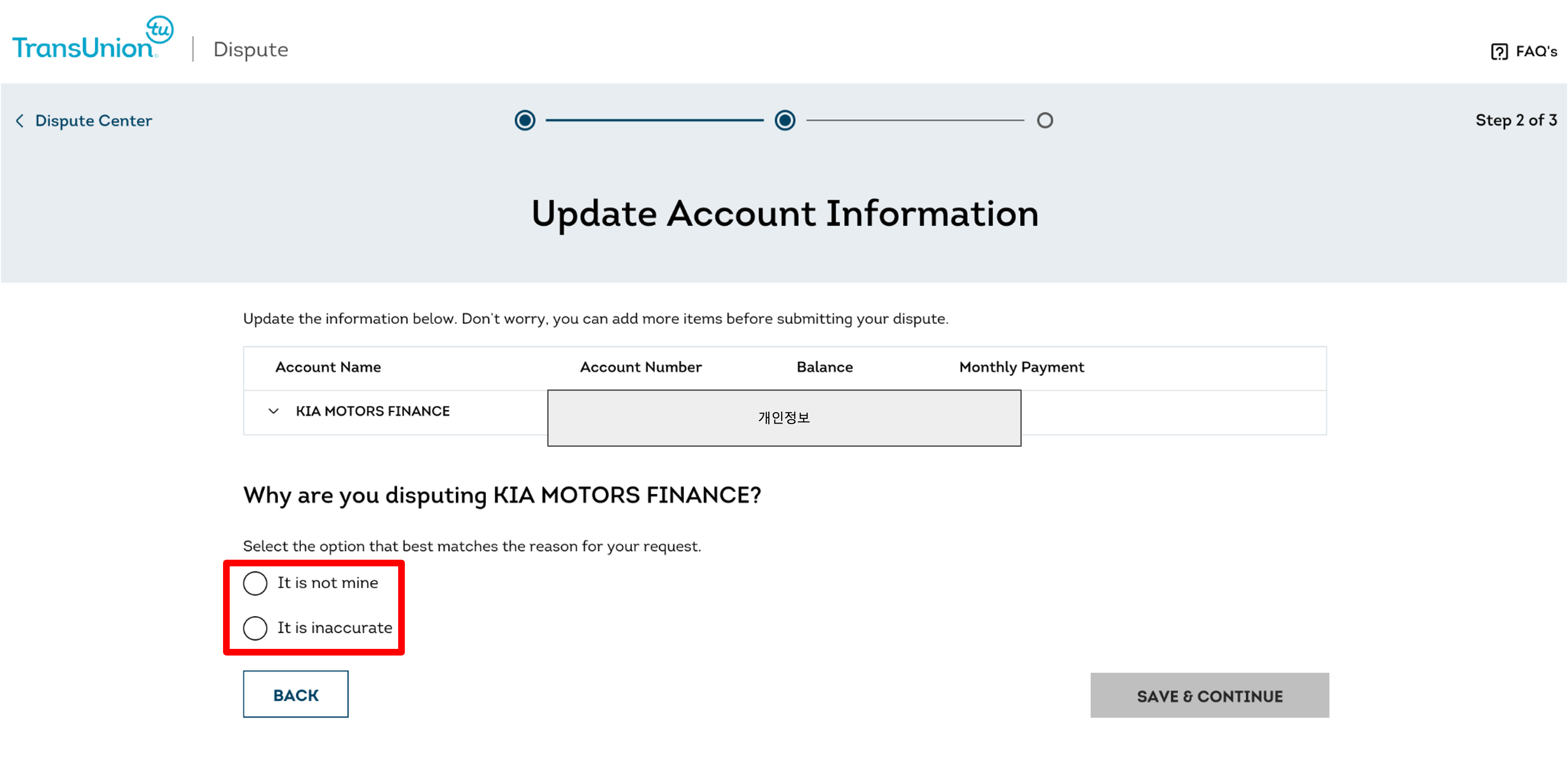 미국 신용 리포팅 에이전시에는 Equifax, Experian, 그리고 TransUnion이 있는데, 이 중에서 저는 온라인 접수가 가능한 TransUnion과 이의 제기 절차를 진행하기로 합니다.