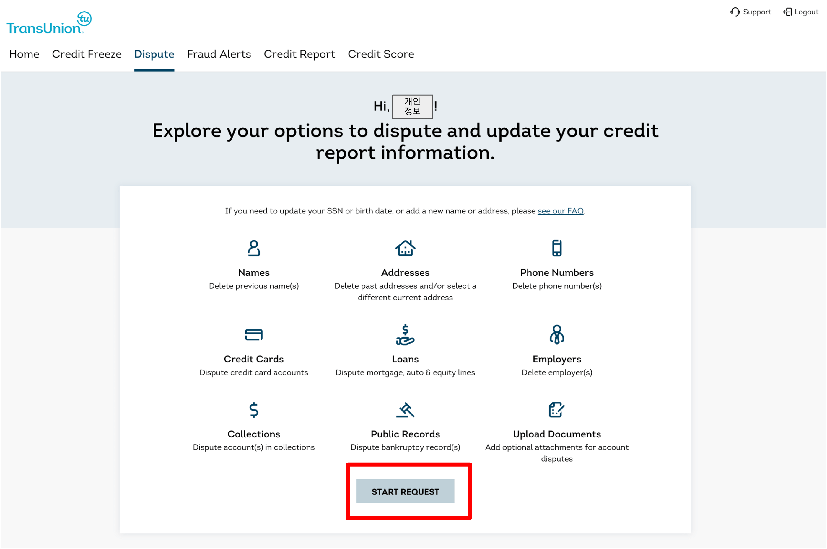 (800) 916-8800Transunion이의 제기 온라인 신청하기